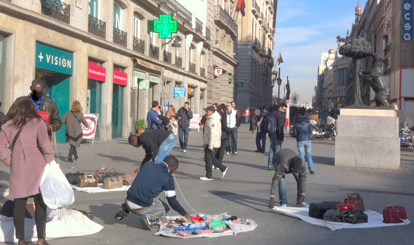 A veces recuerdo cuando niño subía las escaleras del metro en Sol, paso a paso pues el montón de gente que salía y entraba te impedía ir más rápido. Una vez en la puerta del sol, una corriente de vida te rodeaba. Miles de personas iban, venían o esperaban. Unos leían el periódico, otros compraban lotería, otros entraban a las pastelerías, otros salían de las zapaterías, colas para comprar tabaco, colas para bajar y subir a los autobuses, filas de taxis blancos y rojos cruzaban por todos lados. Te perdías en las calles aledañas, rumbo a la plaza mayor mientras esquivabas y te esquivaban los viandantes. Allí veías las tiendas llenas, de telas, librerías, de imaginería comprando santos, crucecitas, estampas. También el cartel del gato negro, los amigos que salían de los bares, la gente agolpada en los escaparates. No había tienda que no tuviera menos de dos empleados. Y lo dicho en la plaza mayor, sus pintores, sus tiendas famosas de sombreros, de efectos militares, de bastones y filatelia. Las terrazas, el aroma a bandolero de Luis Candelas, los ecos del tiempo en los soportales, las risas de los jóvenes, la serenidad de los mayores.